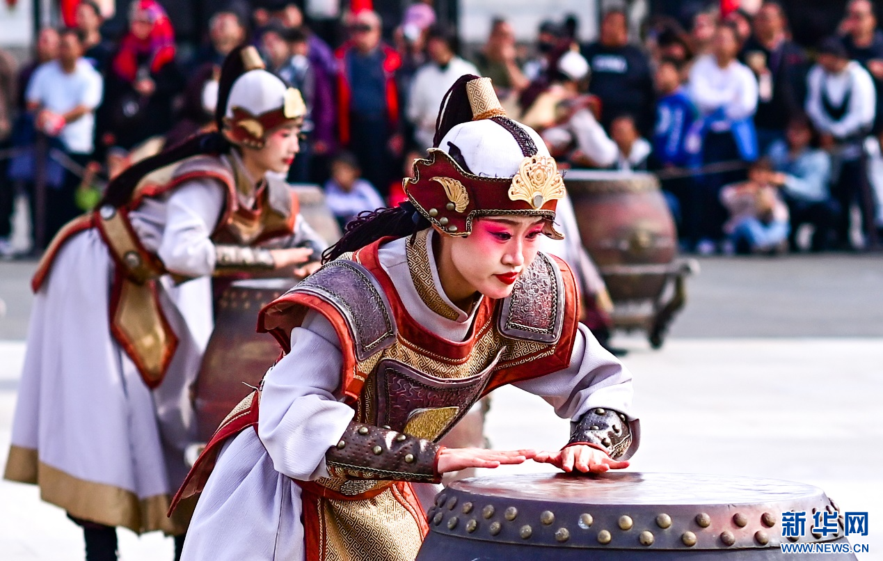 10月4日,民间艺人在鄂尔多斯市伊金霍洛旗鄂尔多斯文化产业园表演潮汕英歌舞。潮汕英歌舞于2006年入选国家级非物质文化遗产名录。新华网发(王正摄)