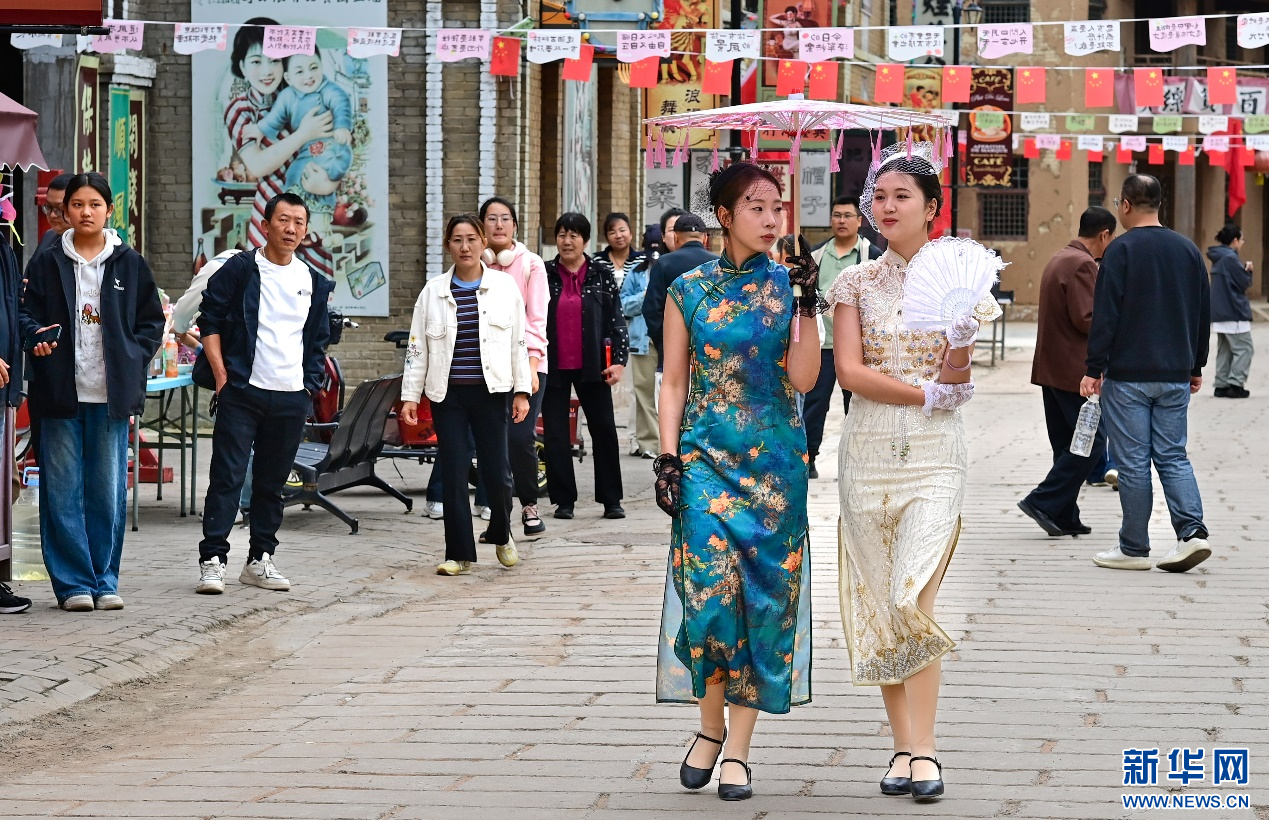 国庆中秋假期,内蒙古鄂尔多斯市伊金霍洛旗鄂尔多斯文化产业园依托园区内影视拍摄基地,推出沉浸式电影场景,讲述红色故事,展现不同历史时期的百姓生活场景,吸引众多游客前来观赏度假。
