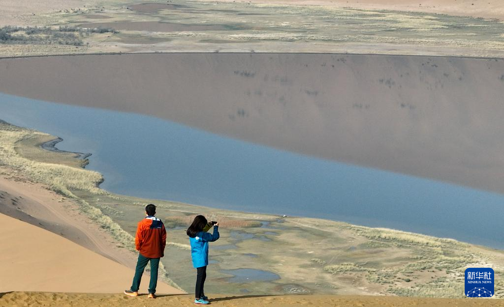 秋日,位于内蒙古阿拉善盟阿拉善右旗的世界遗产巴丹吉林沙漠—沙山湖泊群褪去炙热,绵延的沙丘披上柔和金光,与点缀其间的湖泊相映成趣,勾勒出一幅静谧而壮丽的自然画卷。