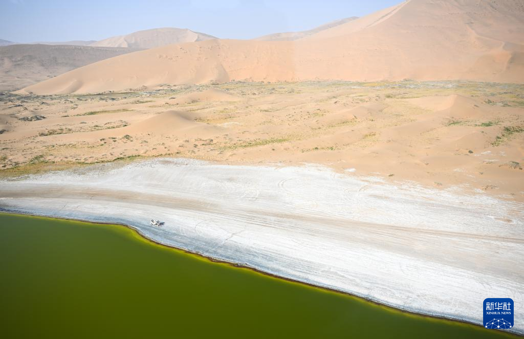 10月22日拍摄的巴丹吉林沙漠中的红海子(无人机照片)。